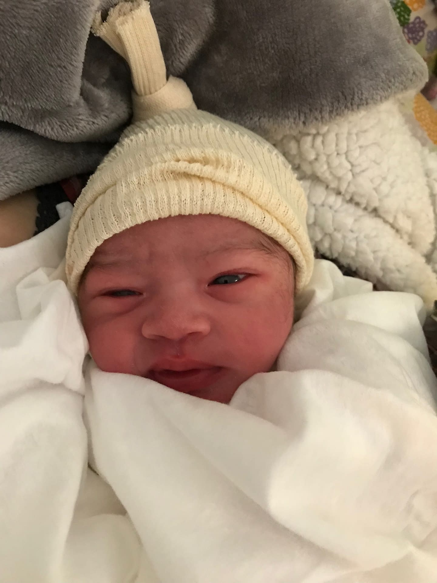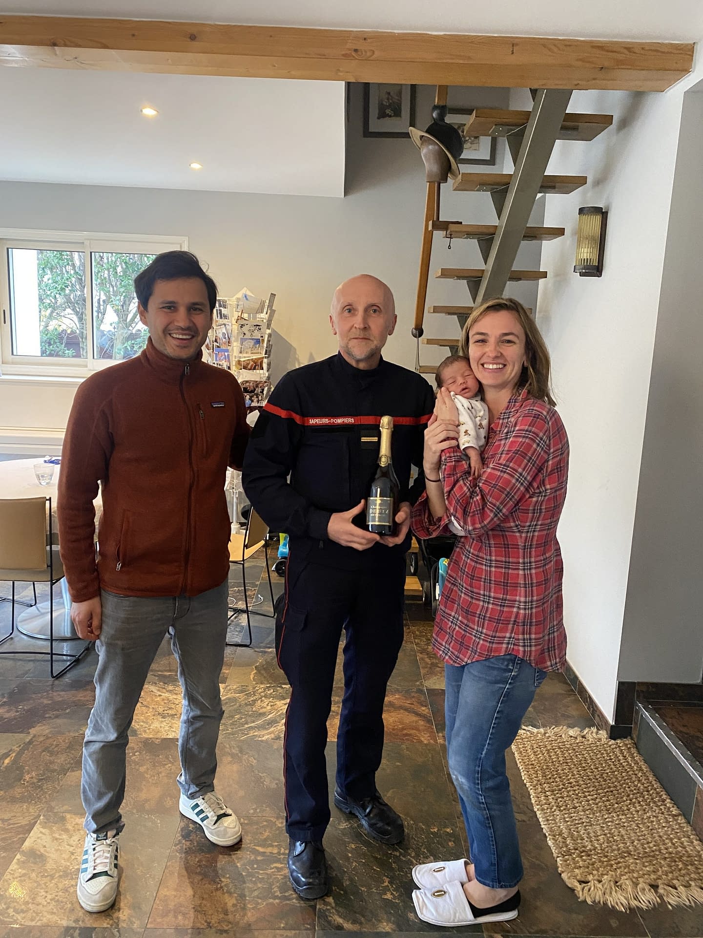 On a invité le pompier qui a été adorable avec moi et qui a pris la toute 1ère photo de notre fille pour que je puisse voir mieux son visage car elle était en peau à peau.