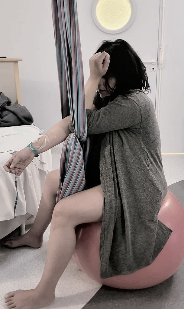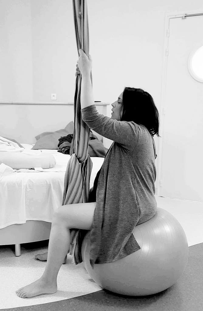 Je me mets alors sur mon petit ballon, lumières tamisées, audio d’hypnose dans les oreilles et je me dis surtout très fort que ça y est, les contractions me rapprochent de mon bébé