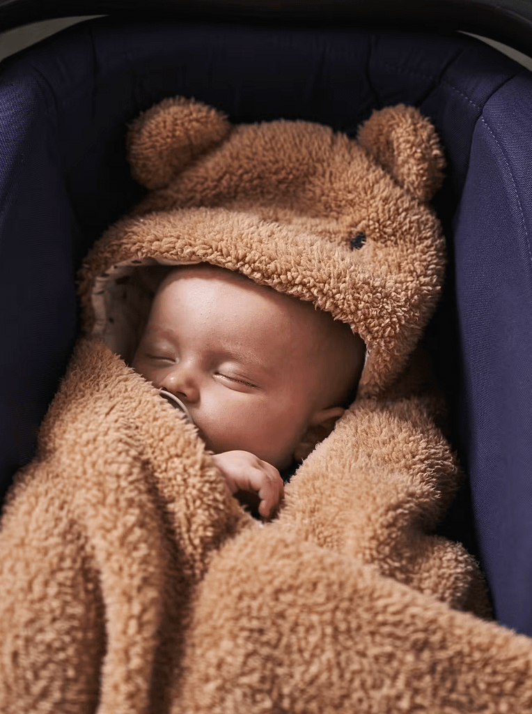 - Un ou deux nids d’ange : c’est ce qui permet de tenir bébé au chaud dans le siège auto. On ne met pas de manteau ou de combipilote dans le siège auto pour des raisons de sécurité, alors le nid d’ange c’est idéal pour garder le chérubin bien au chaud, bien protégé.